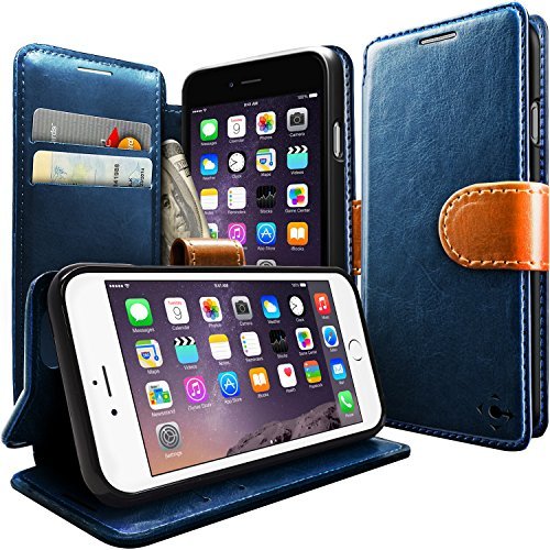 iPhone 6 Case, Caseology [Stand View] Apple iPhone 6 (4.7" inch) Case [Navy Blue] Premium PU Leather [Wallet Case] with Built-in Media Stand, ID Credit Card / Cash Slots and Inner Pocket (For Apple iPhone 6 Verizon, AT&T Sprint, T-mobile, Unlocked)